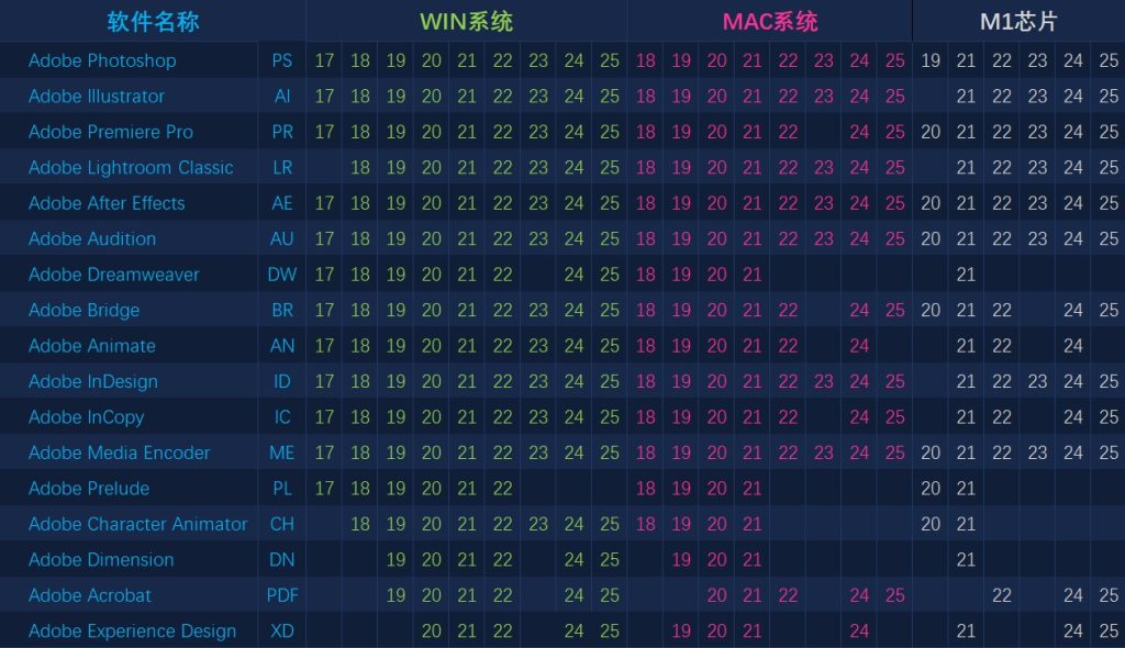 如果详细到每个软件的系统要求可以到官网查询:https://helpx.adobe.com/cn/support,在搜索框内输入你要安装的软件,如:PS系统要求,会有详细的说明。